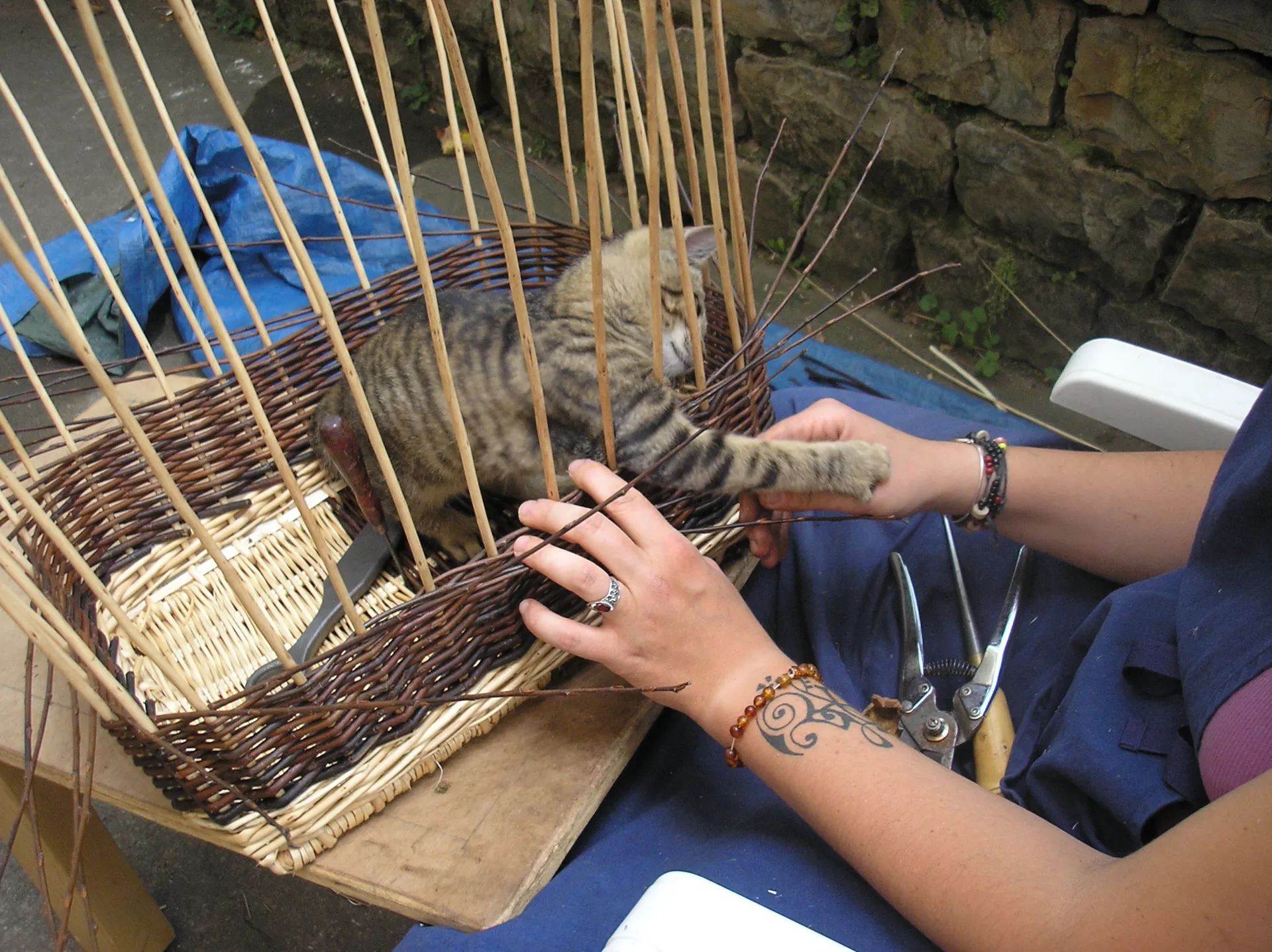 Stage de vannerie (fabrication d’un panier en osier).