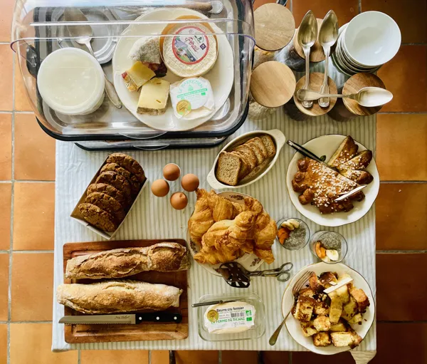 Petit déjeuner chaque matin, fait maison et avec une majorité de produits locaux en partenariat avec des agriculteurs et artisans du coin.