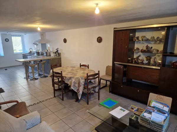 – 1er étage : Une cuisine ouverte entièrement équipée (avec lave-vaisselle), donnant sur un salon lumineux, et un WC séparé.