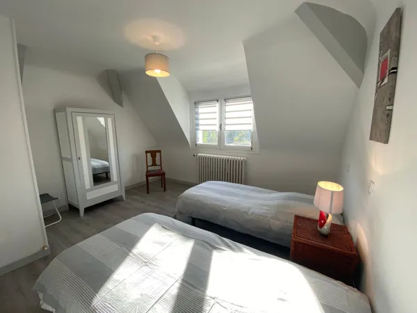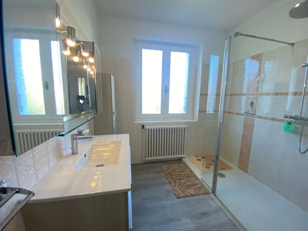 4 chambres (3 lits 160, 2 lits 90), 2 salles d’eau, cuisine (lave-vaisselle), séjour/salon (canapés, télévision), chauffage central gaz, garage, buanderie (lave-linge).